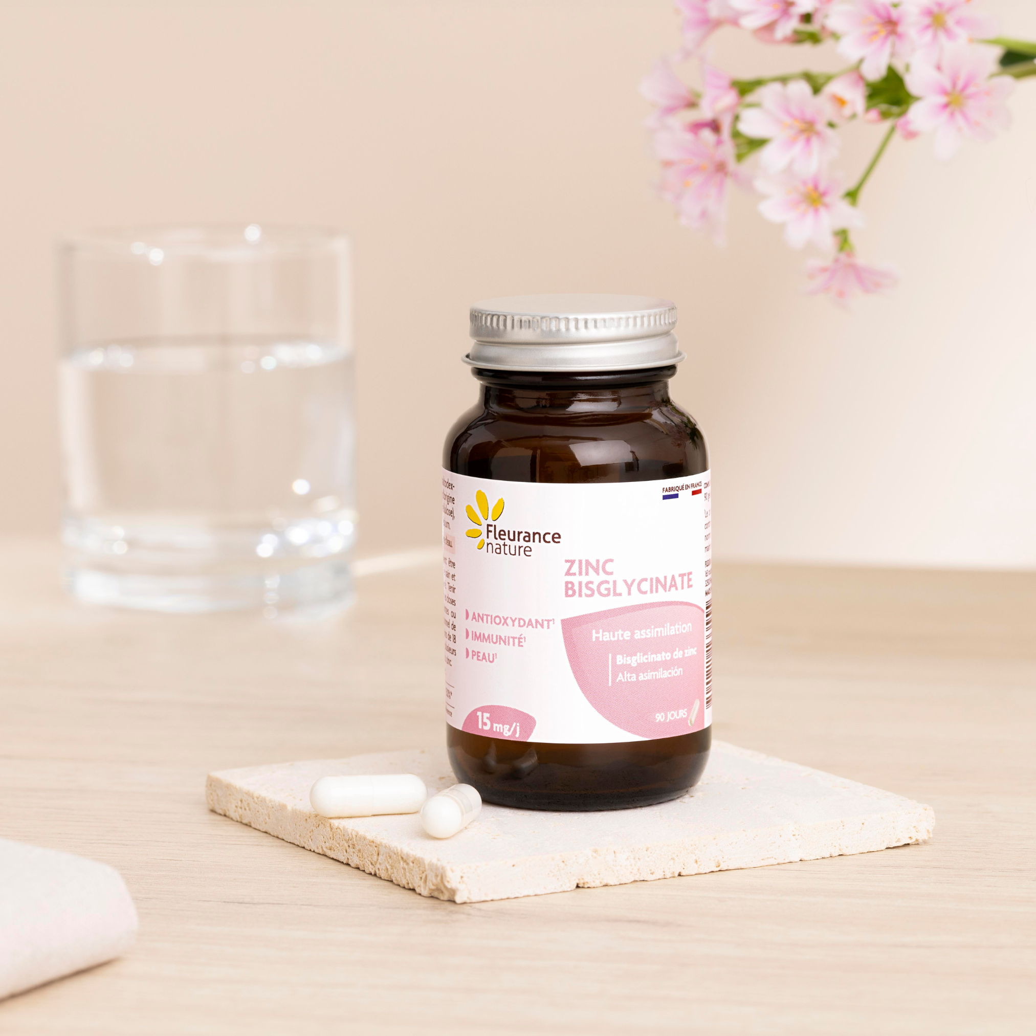 Le zinc est un oligo-élément aux propriétés antioxydantes et reconnu pour contribuer à la beauté de la peau ou encore soutenir le système immunitaire. Avec un dosage journalier optimal de 15 mg, notre zinc apporte l’équivalent de 150% des apports nutritionnels de référence en 1 seule gélule ! De plus, sa forme bisglycinate reconnue comme étant la plus biodisponible pour l’organisme garantit une meilleure absorption et tolérance digestive par rapport à d’autres formes de zinc.